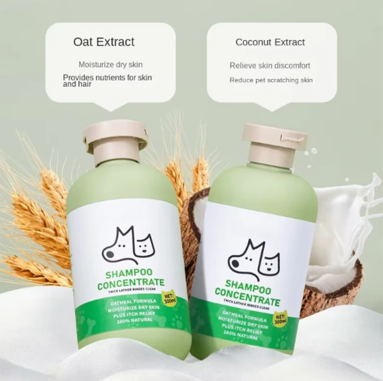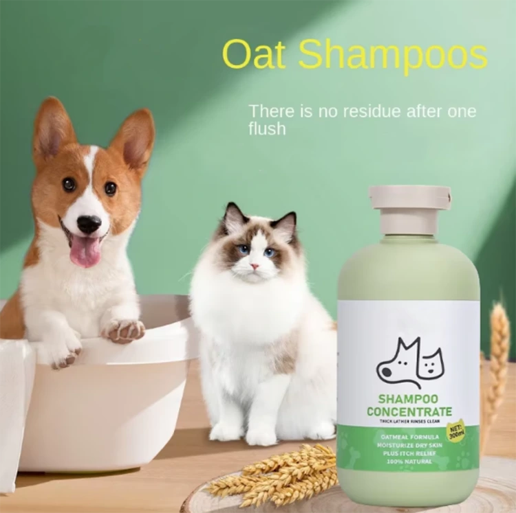 Oatmeal Pet Shampoo contains oatmeal soothing ingredients, which can alleviate skin irritation in pets, creating a healthier and more comfortable environment for their skin and hair. It is hypoallergenic and gently improves itching problems, making the hair shiny. Our product does not contain irritating ingredients and is suitable for daily use.